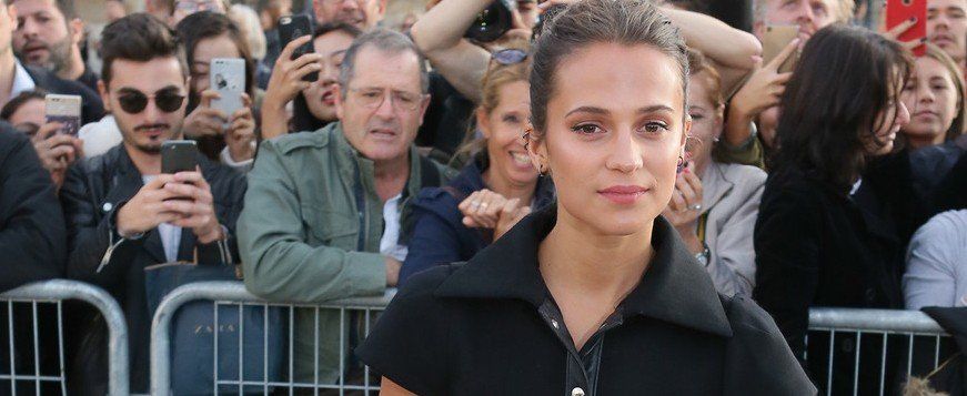 La actriz Alicia Vikander acapara todas las camaras con su vestido con detalles de cuero.