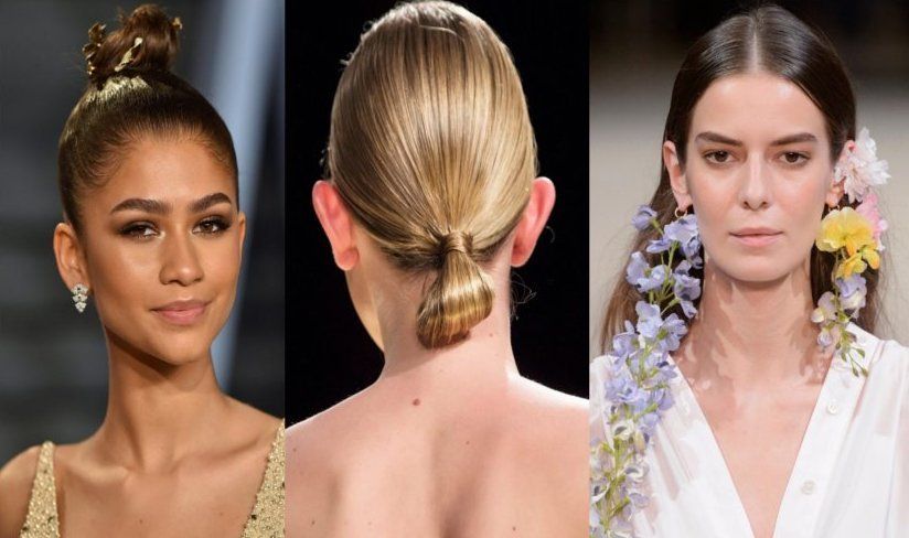 En el desfile de Rani Zakhem, durante la temporada de la Alta Costura observamos este recogido. De hecho, para realizarlo se hace una coleta baja y pulida, la goma la taparía un mechón de pelo. Por otro lado se esconde las puntas para generar un “efecto moño”.